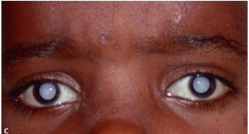 Một số bệnh lý mắt gây mù ở trẻ em có cùng triệu chứng “đồng tử trắng” như đục thủy tinh thể, tồn lưu dịch kính nguyên phát, và bệnh lý võng mạc như ung thư nguyên bào võng mạc, khuyết võng mạc, bệnh võng mạc trẻ sinh non, bong võng mạc. Các bệnh lý mắt này làm mất đi môi trường trong suốt của mắt, khiến cho không thể tiếp nhận ánh sáng, hoặc ánh sáng không được chuyển thành tín hiệu điện. Bệnh lý nhóm này có thể xuất hiện do bẩm sinh, sau chấn thương hoặc sau viêm nhiễm ký sinh trùng. Đặc biệt, bệnh võng mạc trẻ sinh non (ROP) là bệnh phổ biến khi ngày càng nhiều trẻ sinh non. Theo nghiên cứu, trẻ có cân nặng lúc sinh từ 1.000 – 1.251 gram có 47% mắc ROP.