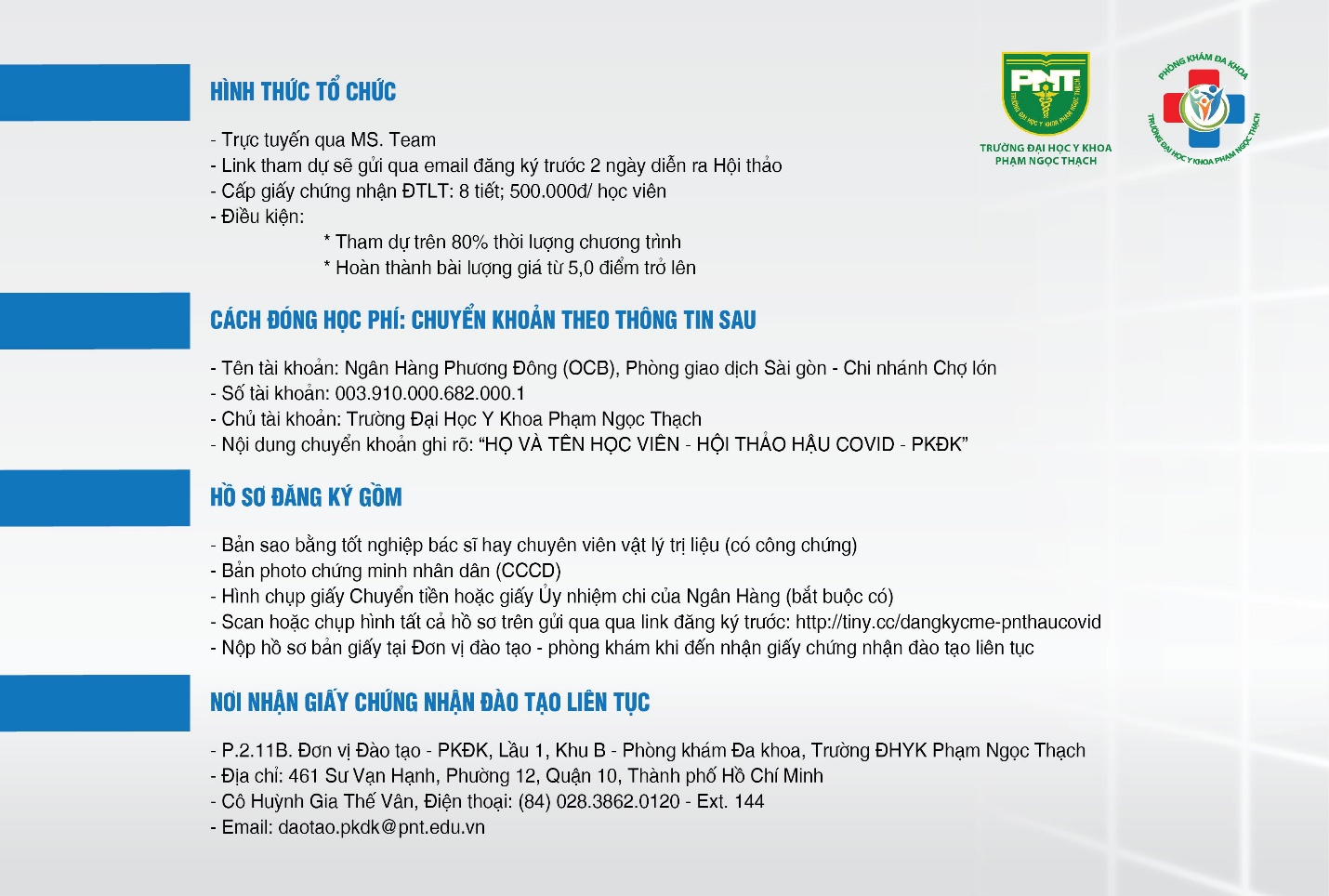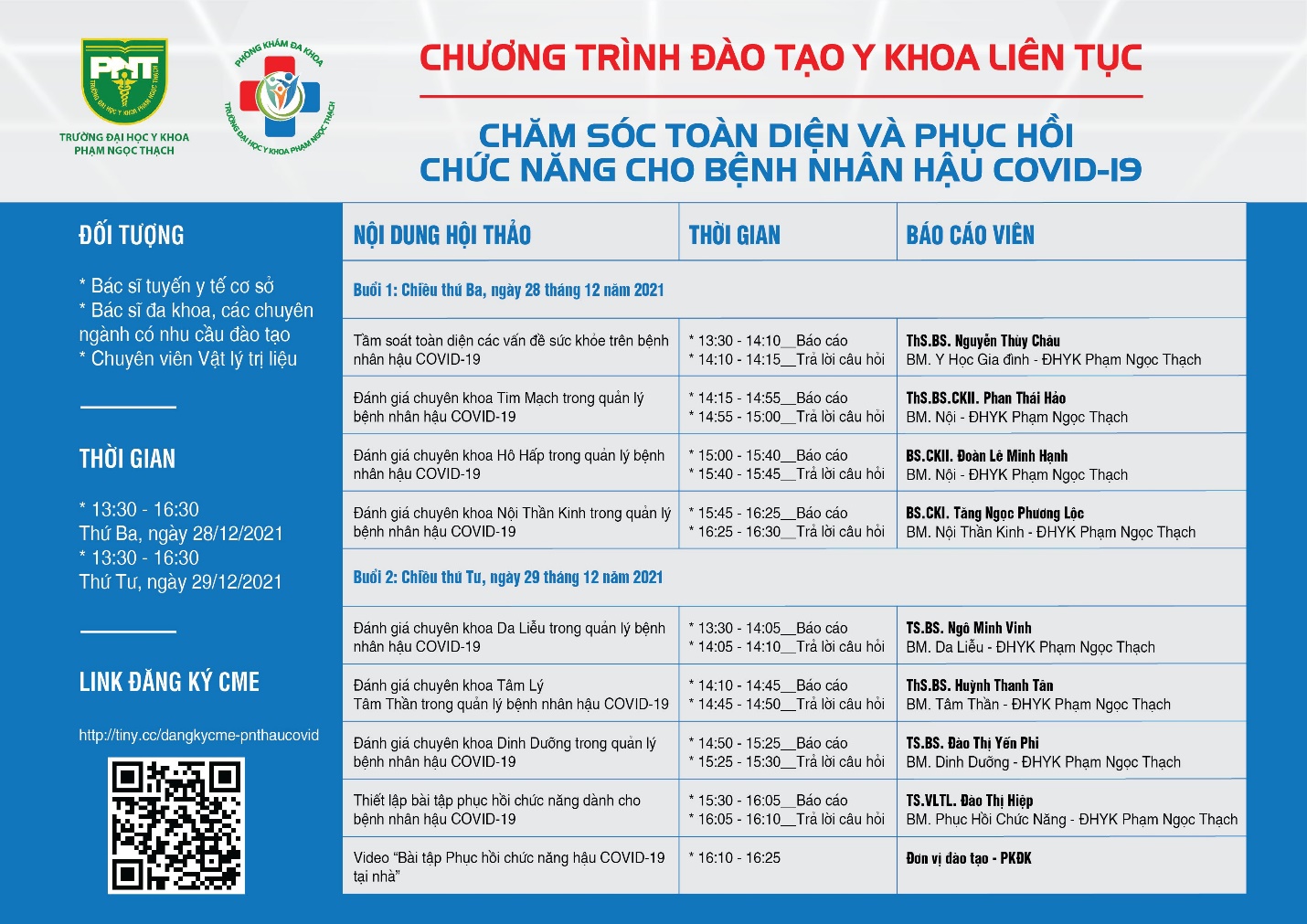 CHƯƠNG TRÌNH ĐÀO TẠO Y KHOA LIÊN TỤC: ” CHĂM SÓC TOÀN DIỆN VÀ PHỤC HỒI CHỨC NĂNG CHO BỆNH NHÂN HẬU COVID-19 “