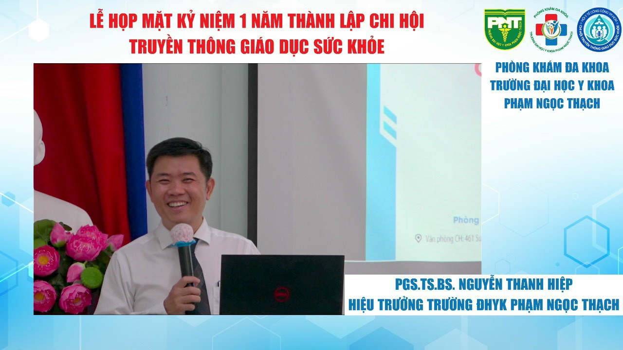 Sau phần báo cáo kết quả hoạt động năm qua và kế hoạch sắp tới của Chi hội, PGS.TS.BS. Nguyễn Thanh Hiệp – Hiệu trưởng Trường ĐHYK Phạm Ngọc Thạch phát biểu tham luận ôn lại chặng đường đã đi và những nỗ lực của Chi hội Truyền thông Giáo dục sức khỏe trong suốt 1 năm qua, với các thành tích gặt hái được, Chi hội đã tổ chức thành công nhiều hoạt động truyền thông, giáo dục sức khỏe thiết thực, hiệu quả, góp phần nâng cao nhận thức của cộng đồng về tầm quan trọng của việc bảo vệ sức khỏe.