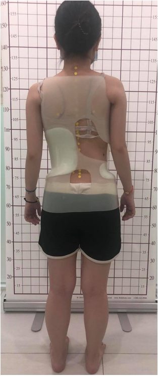 Hình 7. Kiểm tra dáng bộ trước và trong nẹp chỉnh hình cột sống
