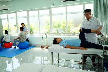 Khoa Phục hồi chức năng chuyên sử dụng các tác nhân vật lí như sóng xung kích, siêu âm, kéo cột sống, sáp, hồng ngoại, laser… để làm giảm nhẹ các cơn đau, nhức, mỏi mệt do gánh nặng tuổi tác, gánh nặng mưu sinh, căng thẳng vì áp lực công việc… Đặc biệt, chương trình tập luyện tiếp cận với thực hành lâm sàng dựa trên bằng chứng (EBP), đáp ứng với từng điều kiện, bệnh lí, hoàn cảnh, và quan trọng là mong muốn của khách hàng/ bệnh nhân trong các hội chứng vai gáy, đau lưng, thần kinh tọa, thoát vị đĩa đệm cổ, lưng, chấn thương cơ, khớp…, các hạn chế vận động, chức năng sinh hoạt: cứng khớp, teo cơ do di chứng yếu, liệt sau tai biến mạch máu não, chấn thương cột sống, phẫu thuật, tái tạo dây chằng như cứng khớp, teo cơ, co cứng cơ…